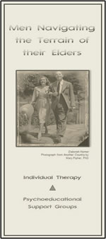 Services offered to male caregivers include building self-capacities for tolerating intense feelings and ambiguity, enhancing one's capacity for attachment in caregiving relationships, and techniques of self-soothing. The culturally defined gender conflict as male caregivers is discussed. Finally, men who are only children or sole caregivers for their elders explore the 'exclusive contract' between the care recipient and the caregiver.